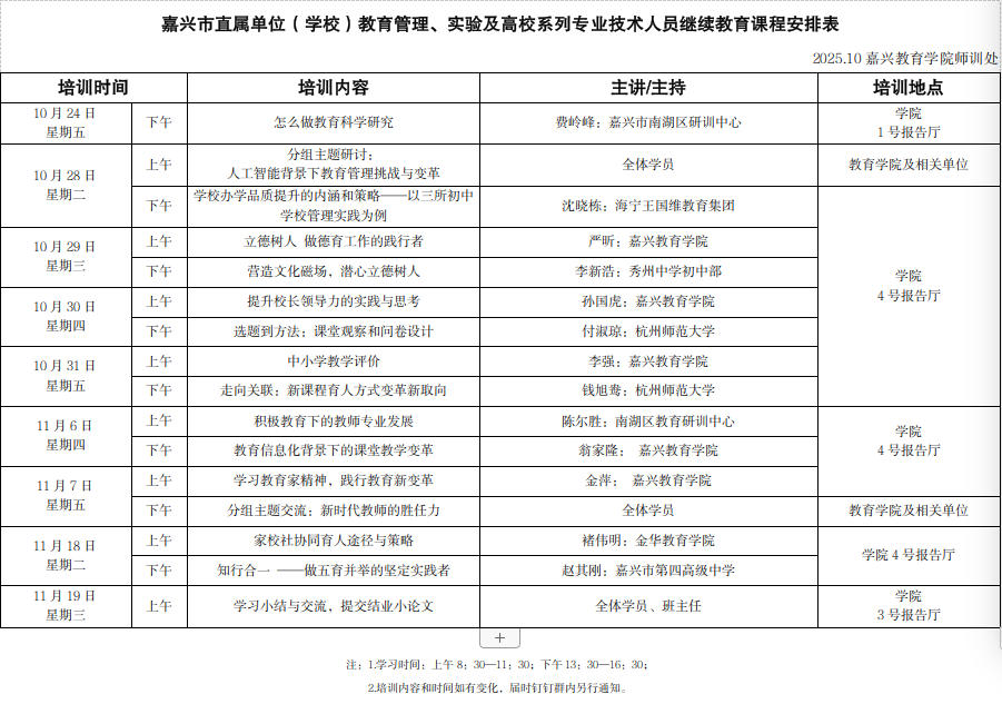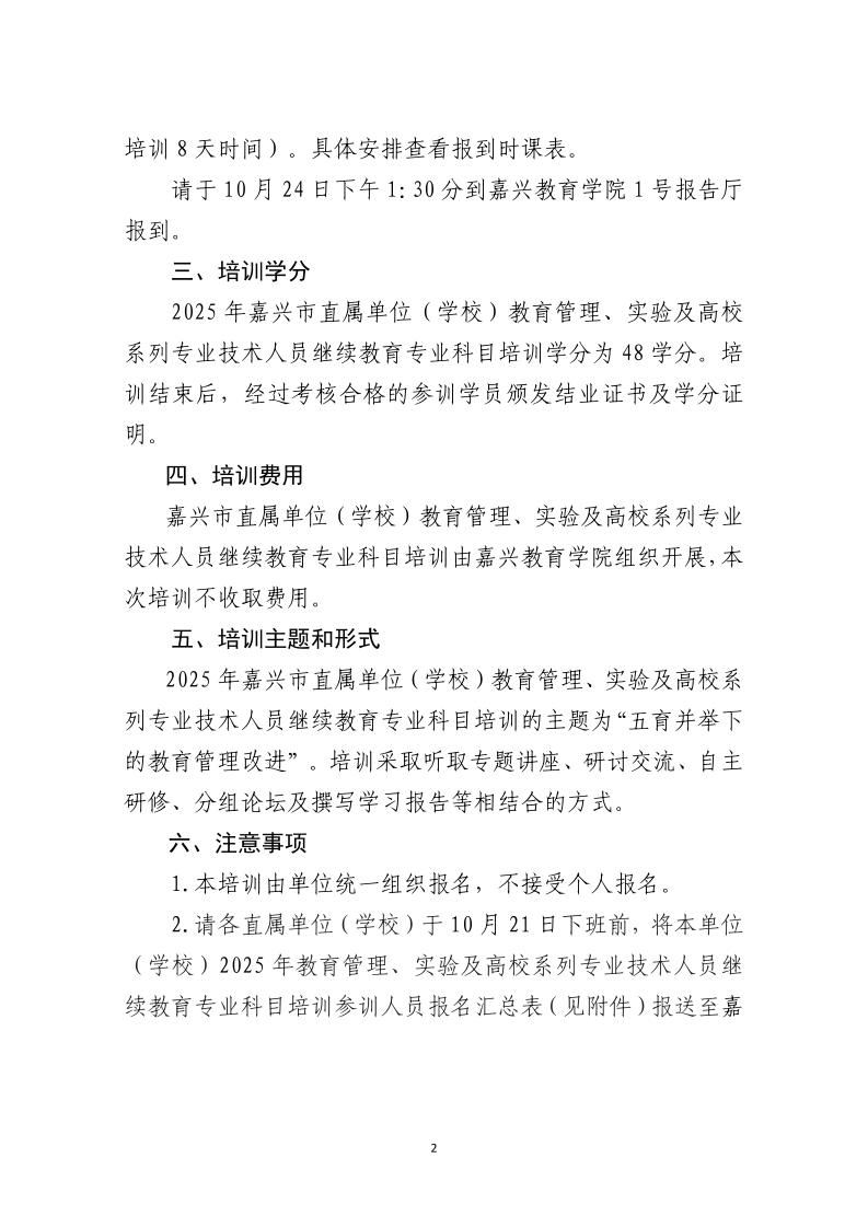 2025 年嘉兴市直属单位(学校) 教育管理类专技人员 继续教育培训